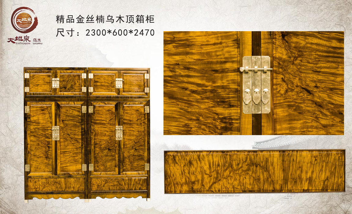 金丝楠木家具精品顶箱柜,雅安杨总定制产品,所选料为金丝楠阴沉木精品纹路,历时半年多所出成品。