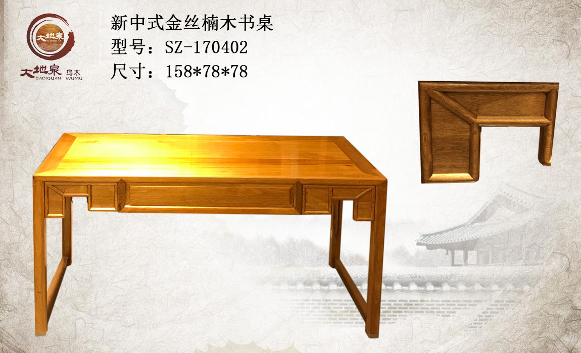 金丝楠木新中式书桌尺寸:1580*780*780 型号:SZ-170402 材质:金丝楠木